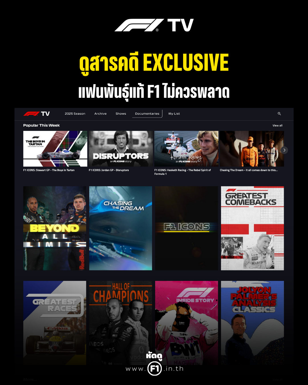 Formula 1 มีบริการที่ชื่อว่า F1 TV ให้แฟนๆ F1 สามารถเข้าถึงเนื้อหา Exclusive ต่างๆ ได้ วันนี้หัดดู F1 ขอแนะนำฟีเจอร์ต่างๆ และค่าใช้จ่าย ตามรายละเอียดในรูปภาพด้านล่างนี้นะครับ